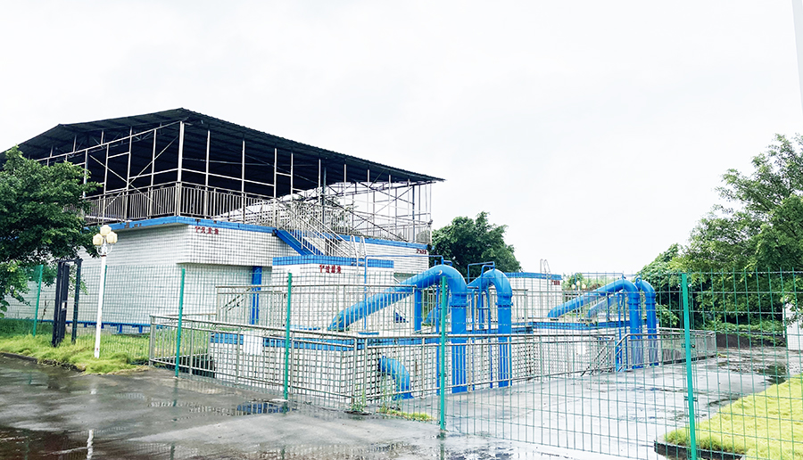 資陽市雁江區(qū)伍隍水廠屬于2011年第三批中央投資農(nóng)村飲水安全項目,為雁江區(qū)示范性民生工程項目。水廠工程投資為2979.9萬元,設(shè)計日供水規(guī)模6000m³/d,可解決雁江區(qū)伍隍、石嶺、東峰、小院、堪嘉,隨后2017年在增加南津,清水共計7個場鎮(zhèn)92個村的約10萬人口的飲用水安全問題。供水主管網(wǎng)約65KM,廠區(qū)位于雁江區(qū)伍隍鎮(zhèn)瓢山村五社,占地19.15畝。原水為雙石橋水庫庫水,取水方式為浮船式取水。伍隍水廠于2012年4約開工,2012年9月底建成并試運(yùn)行,經(jīng)衛(wèi)生防疫部門檢測,伍隍水廠出廠水質(zhì)達(dá)到國家《生活飲用水衛(wèi)生標(biāo)準(zhǔn)》。伍隍水廠集高標(biāo)準(zhǔn)、現(xiàn)代化、園林式于一身,具有建設(shè)規(guī)模大、選址科學(xué)合理、生產(chǎn)設(shè)備精良、自動化程度高、管理機(jī)制新、公益性強(qiáng)、受益人口多的特點(diǎn)。廠區(qū)的建設(shè)式按照嚴(yán)格的招投標(biāo)程序,選擇了技術(shù)過硬的施工隊伍精心打造,核心制水工藝及控制系統(tǒng)均引進(jìn)了先進(jìn)技術(shù)理念,主要機(jī)電設(shè)備、電器何儀表均采用了通同行業(yè)優(yōu)質(zhì)產(chǎn)品。