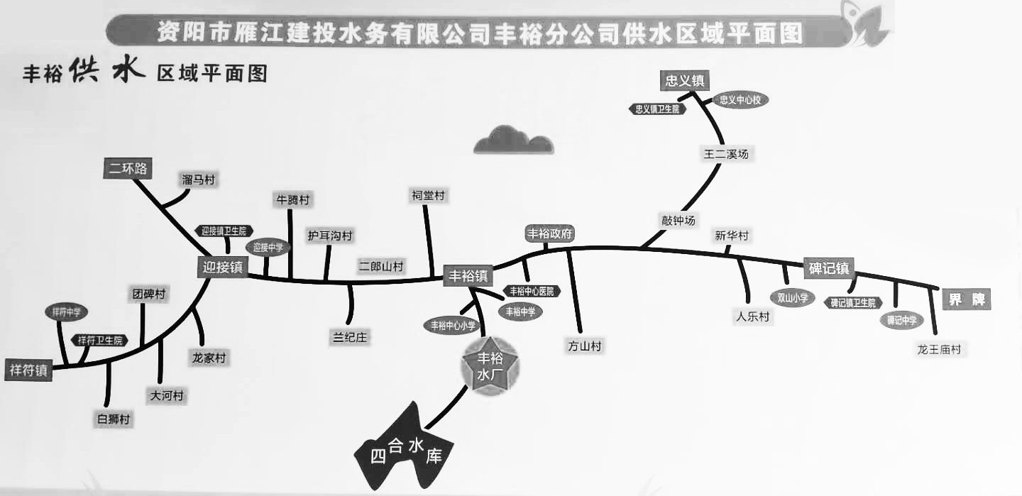 豐裕水廠是2010年第一批中央投資農村飲水安全項目,資陽市重點建項目雁江區(qū)示范性民生工程項目。工程建設時總投資為2549.06萬元,設計日供水規(guī)模8000m³/d,供水主管網(wǎng)約43km,廠區(qū)位于雁江區(qū)豐裕鎮(zhèn)高石村四社,占地20余畝,源水來自四合水庫,輸水方式為重力輸水。豐裕水廠于2010年10月開始修建,于2011年5月修建完成,建成后水質達到《國家生活飲用水衛(wèi)生標準》。已解決雁江區(qū)豐裕、迎接、碑記、祥符、忠義5個鎮(zhèn)31個村的6.7萬人的飲用水不安全問題。